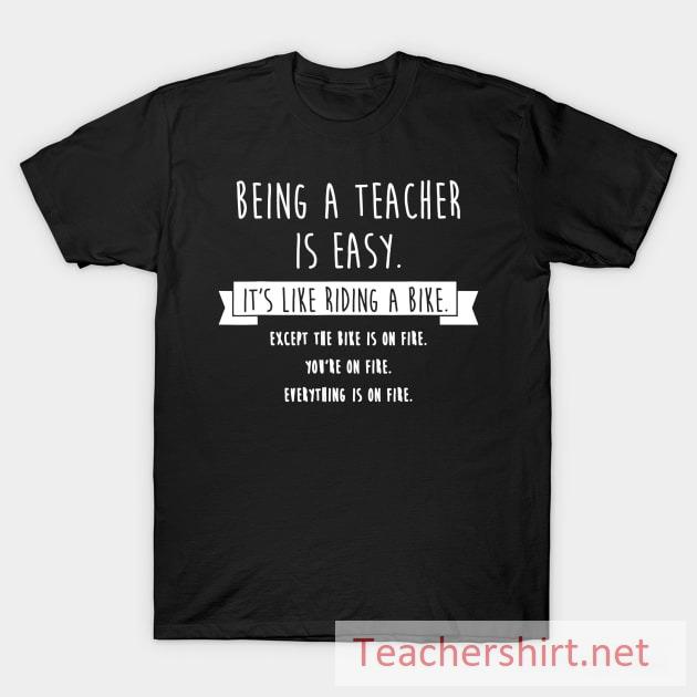 The design of the T-shirt features the phrase “Being a Teacher Is Easy” in a bold and playful font. This sarcastic statement serves as a light-hearted acknowledgment of the demanding nature of the teaching profession. It’s a fun way to show appreciation while recognizing the dedication and hard work that teachers put into their jobs every day.
