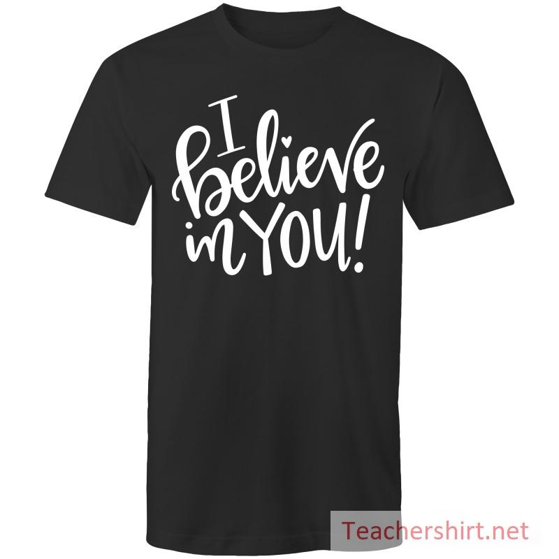 The design of the shirt is simple yet powerful, featuring the phrase “I Believe in You” in an elegant and uplifting font. It serves as a constant reminder that someone has faith in their abilities and is rooting for their success. The design is thoughtfully placed on the shirt, creating a visually appealing statement that will touch the hearts of those who wear it.