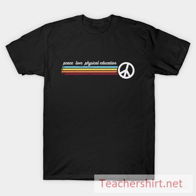 The “Retro Stripes Peace Love Physical Education” T-Shirt also makes a meaningful gift for physical education teachers, fitness instructors, or anyone who embraces the principles of peace, love, and an active lifestyle. It’s a thoughtful choice for Teacher Appreciation Week, sports events, or as a token of appreciation for individuals who inspire others to prioritize their physical well-being.