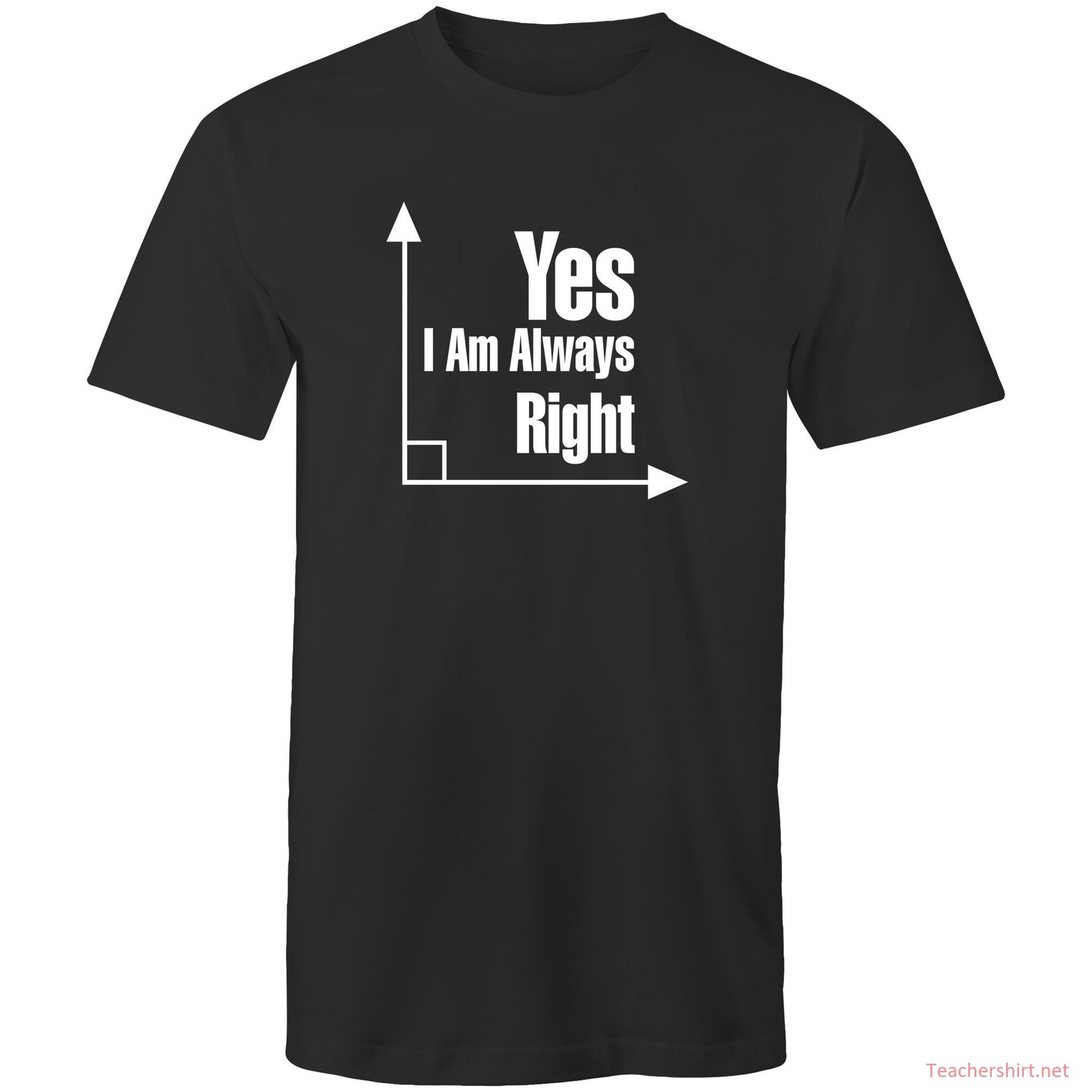 The design of the shirt is sleek and minimalist, featuring the phrase “Yes, I Am Always Right” in a bold, attention-grabbing font. It emphasizes your unyielding confidence and self-belief, making a strong statement about the certainty you hold in your convictions. The design is thoughtfully placed on the shirt, creating a visually striking statement that will make you stand out as someone who knows their own mind.