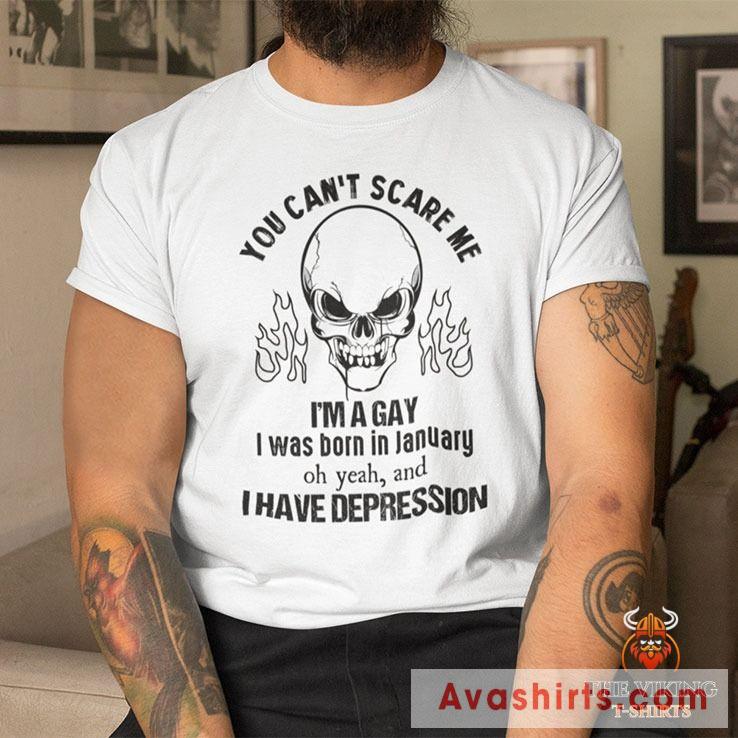 The phrase “You Can’t Scare Me, I’m A Gay I Was Born In January” is impactful and empowering. It conveys a message of unshakable confidence and self-acceptance, resonating deeply with those who have navigated the challenges and triumphs of being a part of the LGBTQ+ community, as well as the unique characteristics often associated with those born in January. The shirt acknowledges the journey of self-discovery and the courage it takes to live authentically.